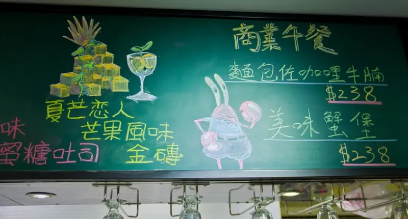 櫃台上方的看板,有著手繪的店內食材宣傳