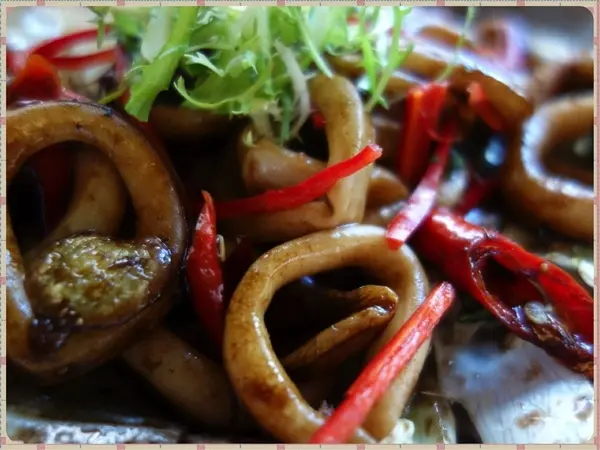 這道小捲暖沙拉整個征服了我,選用澎湖鮮甜的小捲加上蒜片、辣椒、鯷魚翻炒,烹煮的時間恰到好處,口感很柔軟