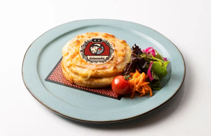 首先登場的是「栗子與地瓜皮卡丘和風鬆餅聖代」,這道甜點靈感來自陶藝家桑田卓郎的作品《杯子(皮卡丘)》(カップ ピカチュウ),以和風口味為主,用巧克力甘納許模仿陶瓷釉藥的流動感,餡料的部分則有地瓜布丁、蜜漬栗子、糖油粉地瓜和栗子奶油等,相當豐富,保證讓人大飽口福!另外還有「喫茶 寶可夢×工藝展 特製法式烤火腿起司三明治」不僅口感香濃,更在表面印有咖啡廳的特製logo,搭配特殊圖樣的襯紙,整體呈現出咖啡廳獨特的懷舊風格。