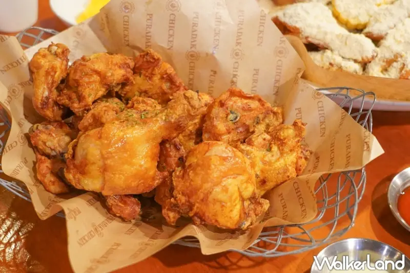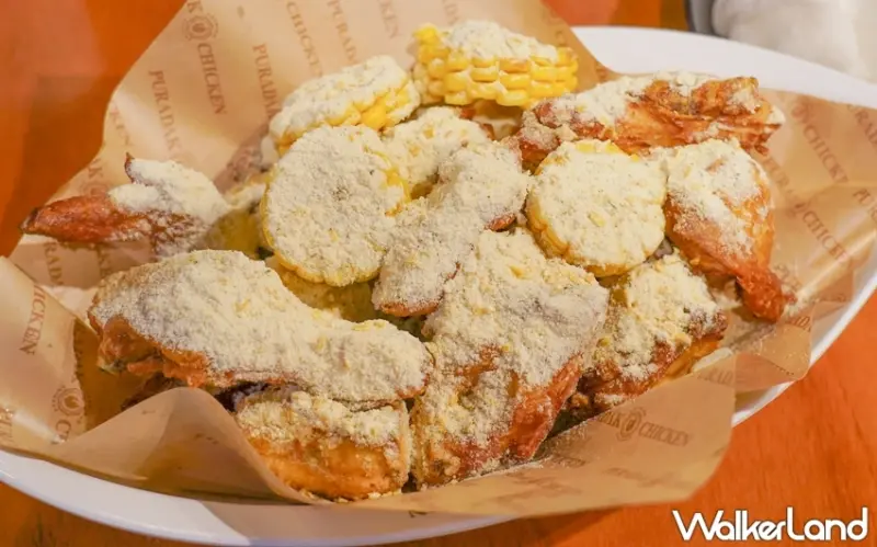 其中,「PURADAK CHICKEN」人氣第一名的「黑蒜炸雞」絕對是必點!採取先烤後炸,於210度的烤箱中烘烤以保留肉汁,接著再下鍋油炸,軟嫩多汁的炸雞再搭配特製醬料,鹹甜開胃,讓人忍不住一塊接著一塊;另外,「烤玉米起司炸雞」也很特別,炸雞灑滿了調味過的香濃起司味粉,並搭配甜玉米登場,每一口雞肉都能感受到滿滿的起司香氣,尤其適合起司控。