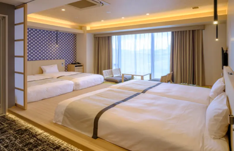 根據入住房客的需求,飯店提供高達20多種房型。其中最推薦的是Premium4人房。房間內在和室上鋪了木質地板,別有一番日式風情。房內的設施包含電視、無線網路連、電熱水壺、冰箱、吹風機、沐浴乳、洗髮精、潤髮乳、牙刷組、刮鬍刀、牙刷、毛巾、浴巾、睡衣和拖鞋。不須額外自行準備洗漱用品!![]()