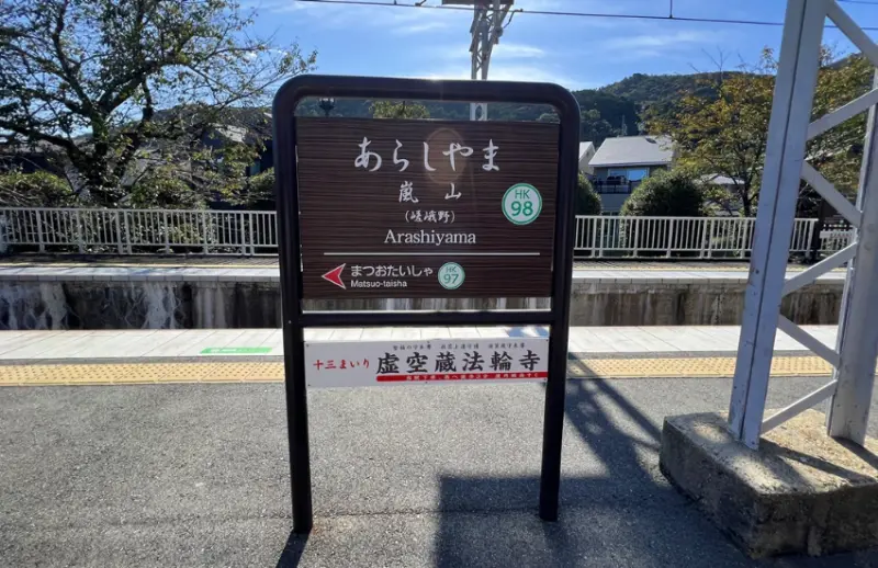 前往嵐山的交通方式很多種,最靠近嵐山老街和天龍寺的是嵐電路面電車(京福電氣鐵道)「嵐山車站」、最靠近中之島與法輪寺的是阪急電鐵「嵐山車站」,而距離市區最遠的則是JR「嵯峨嵐山站」。