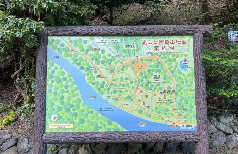 嵐山公園以渡月橋為分界,分中之島、臨川寺和龜山三個區域,相較遊客絡繹不絕的臨川寺地區(通常稱為嵐山老街),中之島與龜山地區知名度並不高,因此遊客較少,但正因如此,這裡保留嵐山專屬的美好角落。