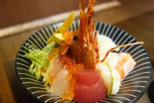 以昆布干貝及柴魚熬煮後過濾,湯味甘甜湯色清徹,並與在地海鮮是基隆外海捕獲之活凍鎖管、 透抽、白帶魚卷等熬煮,湯頭帶有濃郁的海鮮滋味!