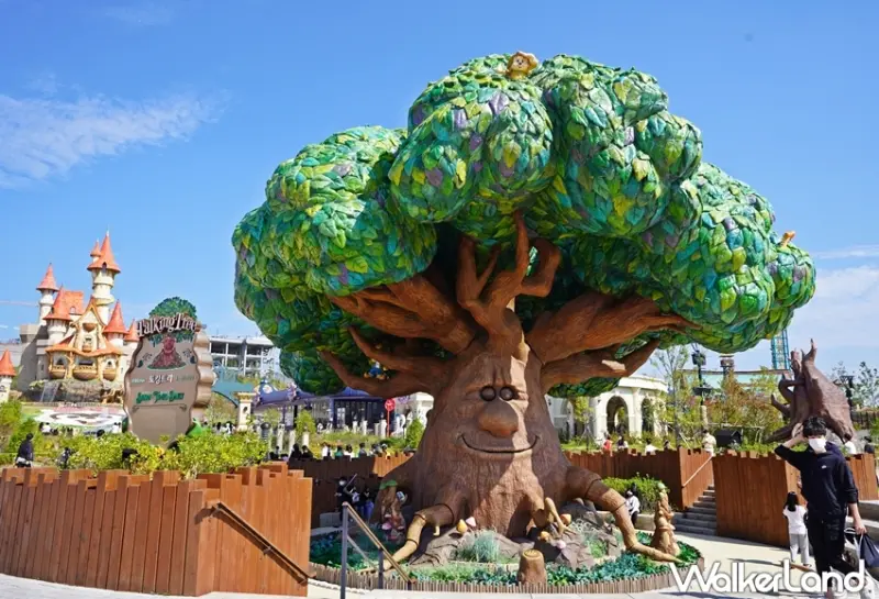 提及「釜山樂天世界樂園」地標,除了和迪士尼樂園一樣有座怎麼拍都美的城堡之外,「大樹」(Talking Tree)亦是必打卡的地標之一,而且只要觸碰到感應處,大樹就會開口說話,並且眨眼、擺動樹根,而不少遊客玩累了也會在大樹下小歇。
