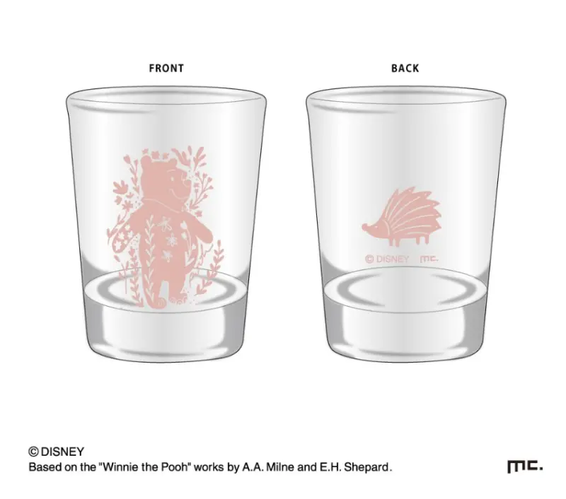 小巧精緻的玻璃杯印有花草環繞的小熊維尼,另一側則是療育刺蝟,適合盛裝花草茶等飲品,來場愜意的下午茶時光。