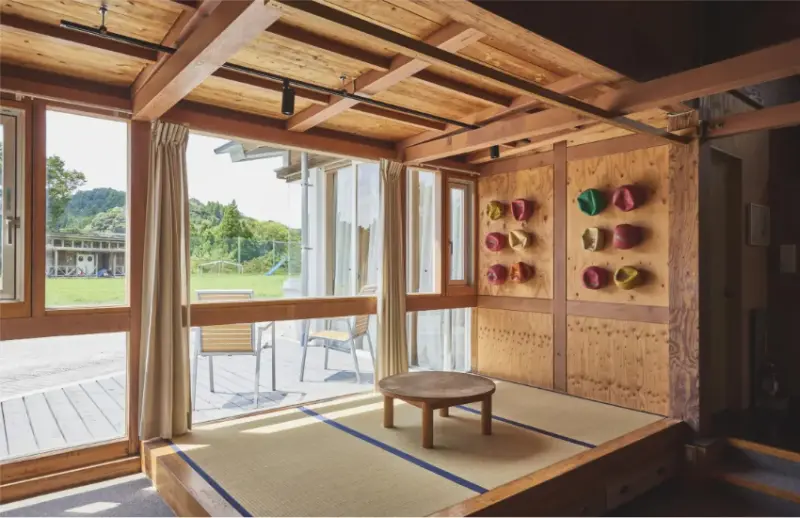 走進 MUJI BASE OIKAWA,首先映入眼簾的是兩棟改造自教室的住宿棟。A 棟面積 141 平方公尺,B 棟則有 151 平方公尺,皆可容納最多 10 人同時入住。每個房間都保留了教室的特色,卻又融入了無印良品簡約舒適的設計風格。想像一下,在曾經是五年級教室的 room5 中入眠,或在六年級教室改造的 room6 中醒來,是多麼有趣的體驗啊!![]()