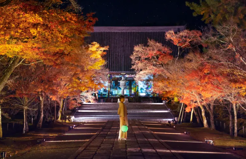 世界遺產仁和寺的「雲海點燈夜間參拜」活動,則將為遊客呈現如夢似幻的秋季夜景。在燈光的映照下,紅葉與古建築相映成趣,彷彿置身於人間仙境。![]()