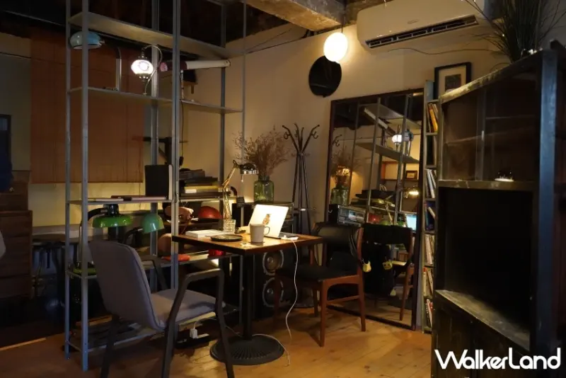 台中老宅咖啡廳「岟川 tshuan á 」鄰近台中國美館,兩層樓空間由形形色色的古件交織而成,乍看像是隨興擺放,實則能感受到一個個物件所在之處背後的細膩之心,才得以呈現如此完美和諧的樣貌,甚至容易使人產生置身古董店喝咖啡的錯覺;此外,每組座位都配有一盞復古檯燈,在氛圍偏暗的環境裡,讓每雙眼睛仍能好好閱讀或辦公。