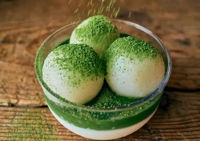 說到抹茶甜點,「八十八良葉舎清水」也下足了功夫。獨家推出的自家製抹茶團子,使用蒸籠蒸出完美口感的糰子,再配上濃郁的自製抹茶餡,絕對是你逛街時的最佳良伴!