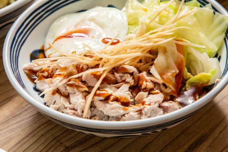 百斬雞飯巧妙地結合了雞胸肉和去骨雞翅,讓你在一碗內就能品嘗到兩種獨特的雞肉風味。雞胸肉質地柔嫩,配上恰到好處的醬料,風味絕佳<全文介紹>