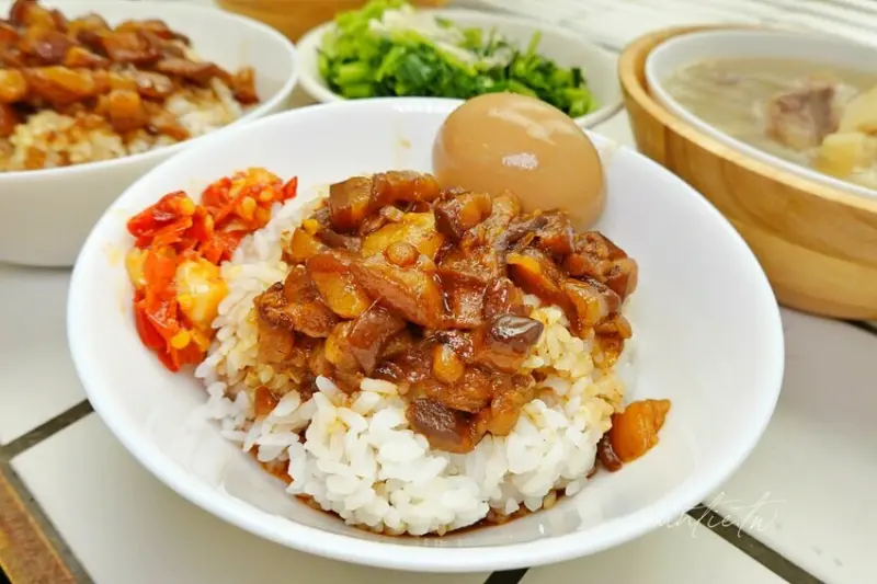 肥肉偏多,但是不會油膩,整體口味還是清爽的,加了蒜頭辣椒真的一下整個扒飯扒光光,超級下飯,滷汁不夠可以再加 !<全文介紹>