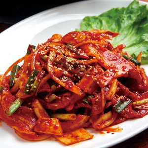 老闆是韓國華僑山東人,老闆娘是韓國全州人,全州正是韓國飲食的發源地,難怪諸如烤肉、泡菜鍋等皆做得道地,有股親切家常味。店裡主打的烤肉,正是風靡眾家韓國明星的當家招牌,特別是辣烤豬五花、牛五花更是韓星造訪必點。而這裡的辣烤豬五花之所以特別,在於現點現醃,將切片的五花肉和洋蔥、香菇、蔥以及韓國辣椒粉、辣椒醬拌勻、略醃片刻,接著就放在石板上烤,簡單以醬料提出肉味的鮮,卻又不至於把肉的顏色和味道給完全掩蓋,烤來香氣四溢、肉Q卻不油。