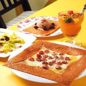 堅守「吃軟不吃硬」,企圖扭正法式薄餅新形象,來自法國布列塔尼的手工薄餅,甜鹹兩種餅皮,分別由各自專屬、手工打造的機器製作,從麵糊、做法、火候拿捏不含糊,甜薄餅crêpe軟中帶Q,散發甜甜麥香;鹹薄餅galette又稱蕎列餅,麵糊中加入蕎麥,口感彈軟紮實混著淡淡香料清香,搭配醇法羊乳酪或正統酸奶醬,風味獨特,散發令人回味不已的布列塔尼美妙異國風情。