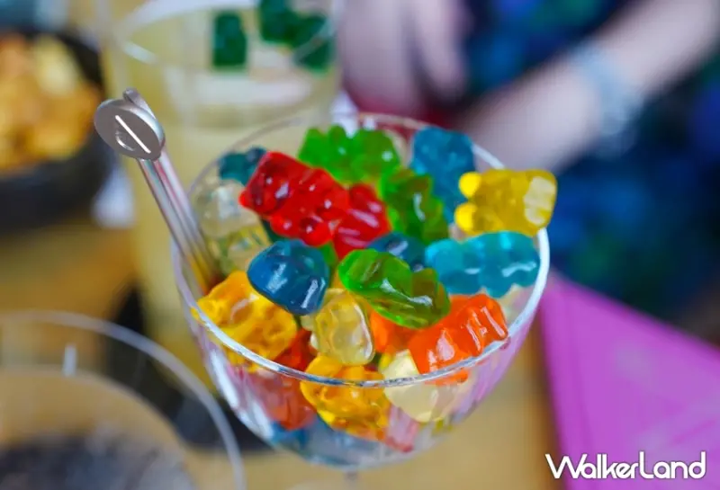 甫踏進「ARGO」目光肯定會被富麗堂皇的酒櫃深深吸引,上頭陳列超過50款的烈酒,部分酒款更是只有在這裡才喝得到。一入座,調酒師便會為每位賓客奉上搭配小熊軟糖的迎賓飲品,讓人驚喜的同時,亦充分感受到「ARGO」年輕有活力的氣息,包括雞蛋仔也有繽紛的小熊軟糖點綴。