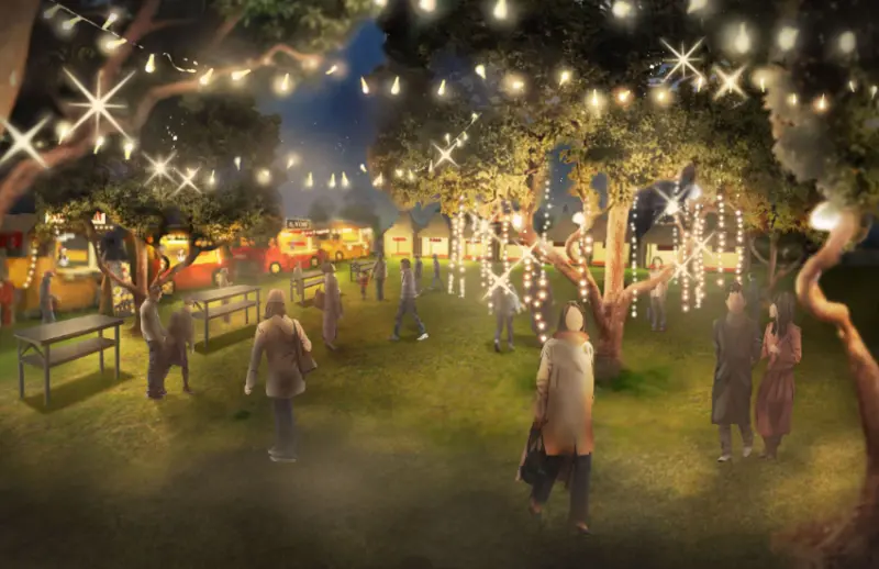 此外,全長約50公尺的燈飾屋頂宛如星空,與紅磚倉庫的古樸建築相映成趣,創造出獨特的拍照背景。想要悠閒享受的遊客,不妨前往免費入場的「燈飾花園」,在樹木環繞的草坪上感受如夢似幻的森林聖誕氛圍。![]()