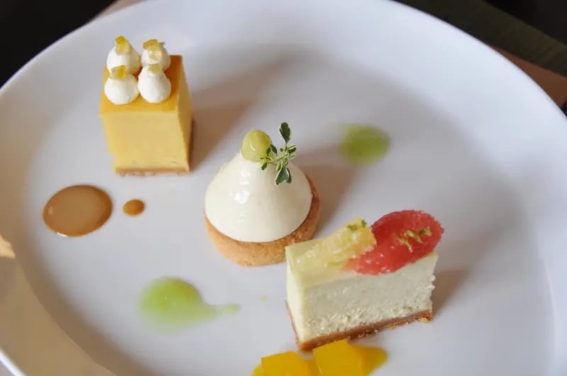 黑糖香草地瓜蛋糕、小米蘋果塔、刺蔥乳酪蛋糕(由左至右)