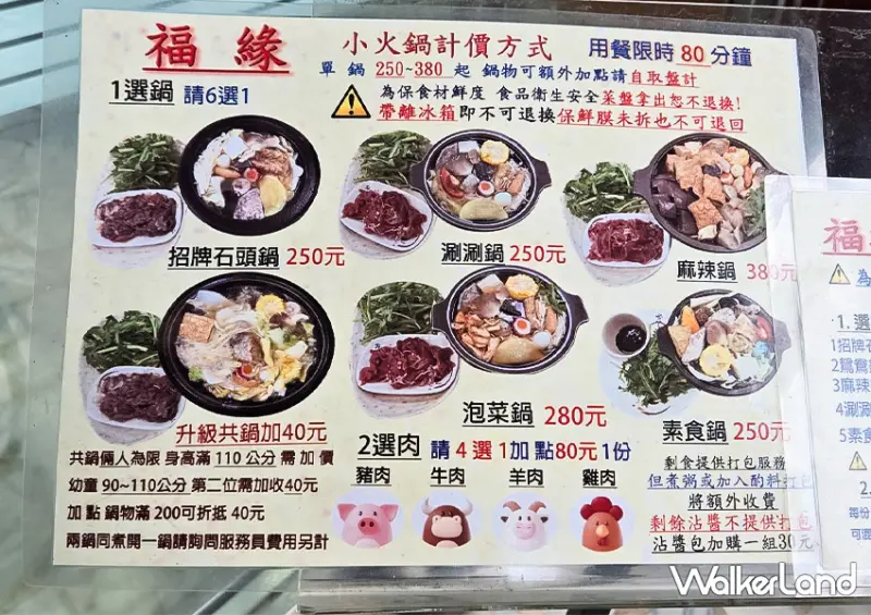 這邊除了許多在地人會來這邊用餐,也有不少外地旅客慕名前來。「福緣火鍋」提供大小火鍋兩種選擇,無論是多人聚餐,或是個人都可以飽餐一頓。這邊多人開鍋費從300到400元不等,個人鍋則是250元起。肉片種類包括豬、牛、雞,佐以洋蔥爆炒,現場香氣十分足夠。其他餐點皆是以自助式,要到冷藏櫃自取。