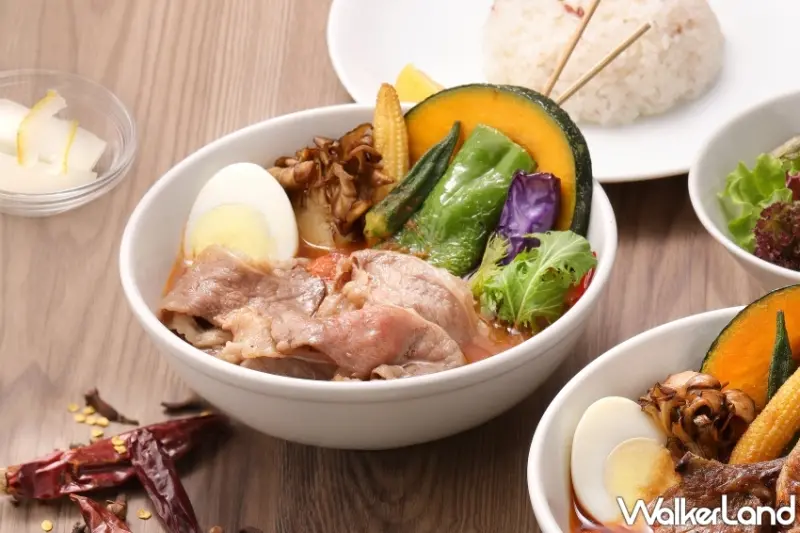 這一次北海道湯咖哩Suage除了進駐於林口三井OUTLET二館,還特別推出台灣限定的「新宿咖哩飯」系列,並由泰迪農園咖哩團隊和日本知名咖哩顧問本城弘合作開發,以雞肉高湯為基底,加入多達20種辛香料燉煮,並搭配鮮甜的蔬菜,提供豐富且細膩的層次。![]()