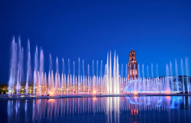 除了靜態的燈光秀以外,還有日本最大的音樂噴泉秀「魔幻之水」相伴。寬達75公尺、最高可噴射至20公尺的水柱,在純白燈海的映襯下,譜寫出另一幅令人屏息的夜間詩篇。![]()