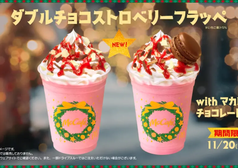 ▲日本麥當勞「雙倍巧克力草莓冰沙」聖誕節去日本旅遊可別錯過 / 圖片來源:マクドナルド