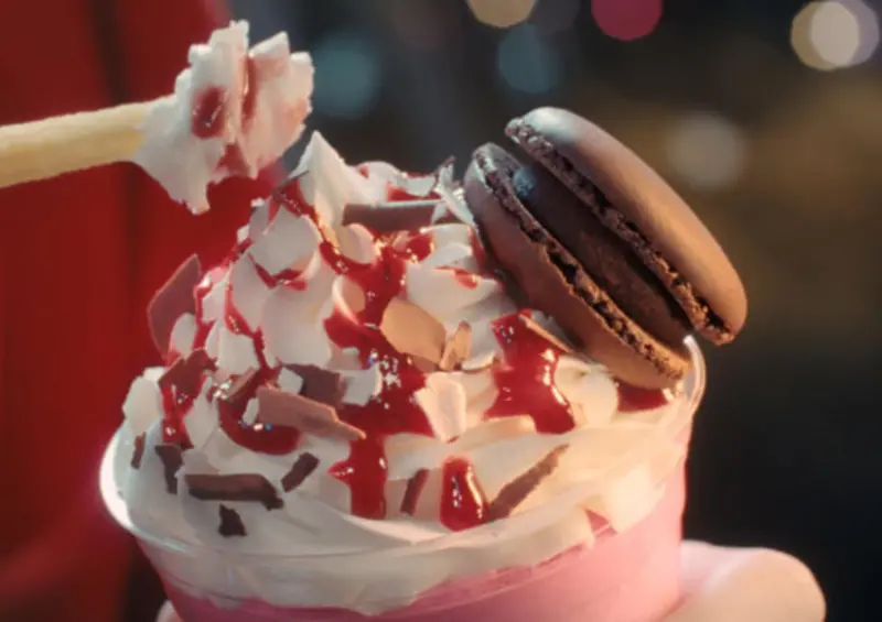 隨著聖誕節的氣氛逐漸濃厚,麥當勞於11/20推出期間限定「雙倍巧克力草莓冰沙」。這次的聖誕特飲「雙倍巧克力草莓冰沙」是以濃郁草莓果汁與柔滑牛奶基底調製而成,搭配蓬鬆的鮮奶油與雙重巧克力碎片,層次分明,讓每一口都充滿驚喜。