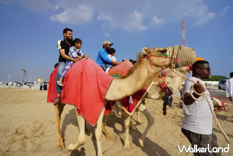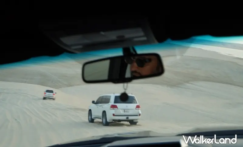 來到卡達多哈,專業的司機會載著大家一同在浩瀚沙漠中奔馳,時而向上攀爬、時而往下俯衝,十分刺激。同時,司機會搭配飆沙情境播放合適又洋溢中東風情的音樂,且窗外不時也會有越野車、四驅車等呼嘯而過,令人猶如置身電影《玩命關頭》拍攝場景;此外,想在沙漠騎駱駝的讀者,亦可額外付費體驗,一次約7至8塊美金。