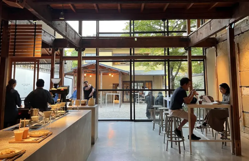 不只紅葉季,京都的一年四季都擠滿了人,石坂街道、古老町家、日式料亭、伴手禮店舖都成為海內外遊客一睹古都迷人美景的朝聖之路;然而當主張慢品味節奏的咖啡氛圍,與京都古都韻味結合時,彷彿說好一般,很有默契地讓人願意停下來享受片刻寧靜、放鬆與專注當下,細細品味一口咖啡過後,不僅感受到了時光的溫柔停滯,還找到了京都另一種新鮮感。