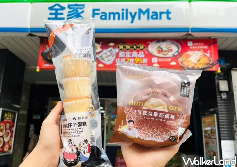 ▲全家台日大戰全壘打「鮮乳杯子蛋糕」與「可可雲朵幕斯蛋糕」買一送一/ WalkerLand窩客島整理提供。