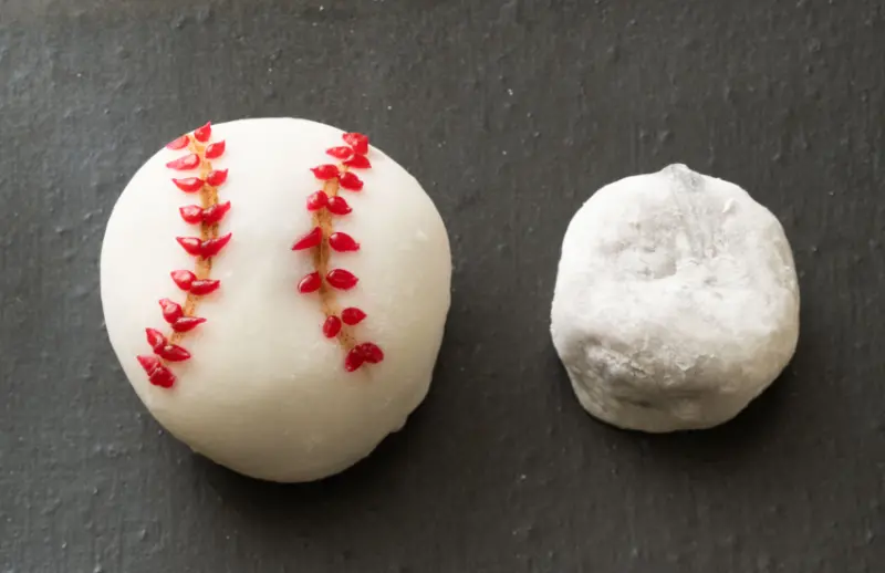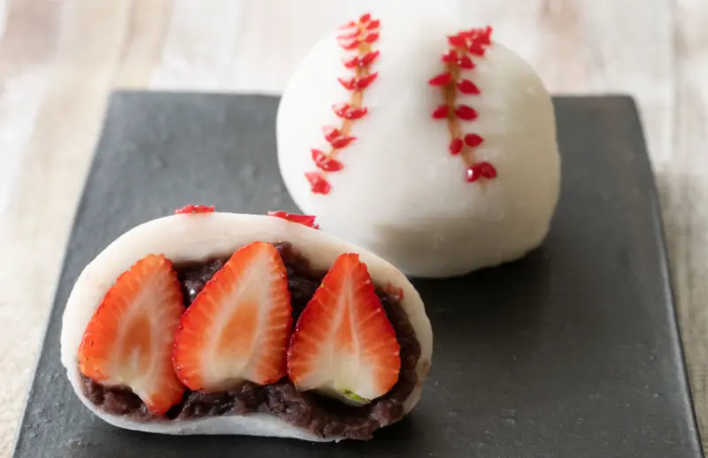 這款大福靈感來自今年在美國職棒大聯盟的世界大賽中締造驚人成績的日本球員們,特別以棒球為設計主題,打造這款「開運超級全壘打大福(開運ジャンボホームラン大福)」。整個大福幾乎和真正的硬式棒球等身大,重量更是一般大福的3倍!採用店內招牌「元祖草莓紅豆大福(元祖いちご豆大福)」為基底,並用羊羹和肉桂完美重現棒球的縫線細節,不僅造型逼真,口感更是超乎想像。![]()