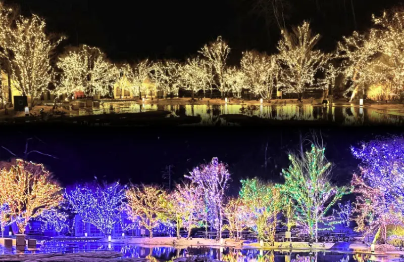 香檳金與七彩燈飾交替點亮的「點燈儀式」每14分鐘熄燈1分鐘,很適合錄影留念。![]()
