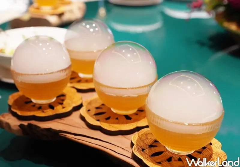 ▲冷前菜「立冬潤養」由饕客親自將晶球置入菜餚之中/ WalkerLand窩客島整理提供