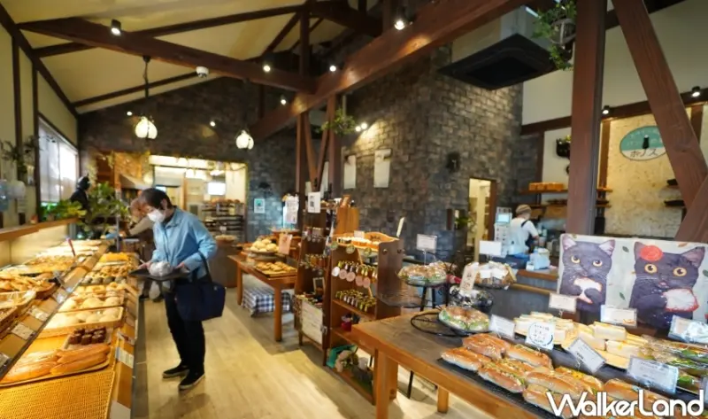 「 スペイン石窯パンの家 ボノス」人氣商品之一的是鹽可頌,黑咪外型的麵包則深受貓奴與小朋友喜愛。而「 スペイン石窯パンの家 ボノス」室內外都有些許座位,也有提供咖啡和茶飲等,加上又附有廣大的停車場,因此不少在地人早餐時段也喜歡直接來此吃早餐。