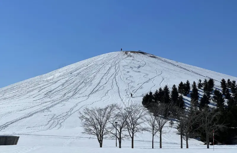 莫埃來山(Mt. Moere/モエレ山)是公園內最高的人工山,相當於20層樓高,山丘以規整的幾何形狀呈現,坡道設計為螺旋式與直線交錯,讓攀頂者可以從不同高度欣賞公園的布局。遠遠接近莫埃來山,就情不自禁被吸引,山體被積雪覆蓋後,如同冰雪世界裡一座巨大的白色金字塔,四周圍一片寂靜,幸好不少當地家庭或朋友帶著雪橇登頂,一邊嬉鬧一邊準備從山頂滑下來,才想起自己人在札幌。![]()