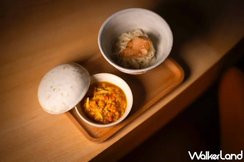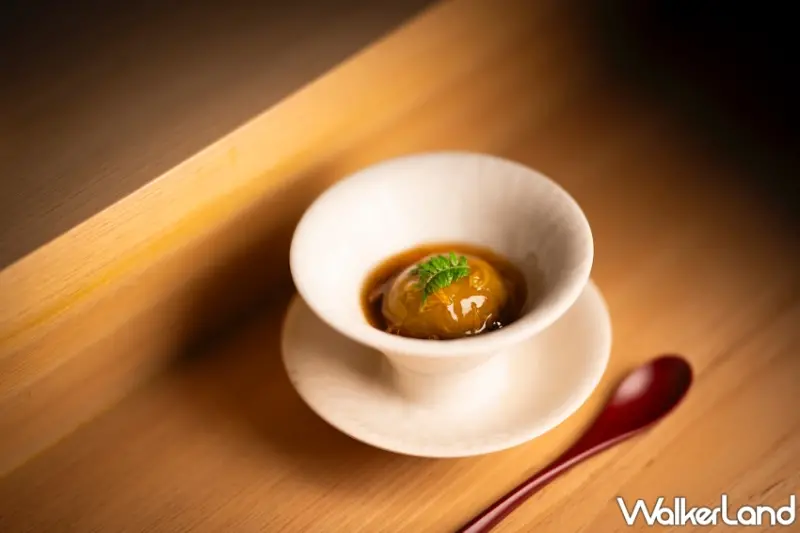 此外,餐廳的空間設計也融入了鍾謦謙主廚對料理的執著。設計師游雅清以「豐饒」為核心概念,運用簡潔線條與傳統工藝細節,創造出低調內斂又不失奢華的氛圍。18席的用餐區,從入口動線到板前座位都經過精心規劃,讓賓客在視覺與味覺的交融中感受料理的深度與豐富性。不僅如此,鍾謦謙還邀請大謙堂郭詩謙老師打造專屬手工餐具,為每道料理賦予獨特的溫度與藝術感。搭配來自高雄六龜的野放台灣山茶,將思鄉情懷與當地文化融入迎賓的每一刻,讓賓客體驗全方位的感官饗宴。