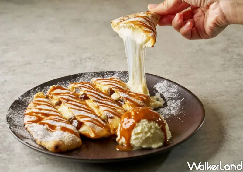 ▲▼ 堤諾比薩「森永牛奶糖蘋果乳酪比薩」和「馬茲卡邦比薩餃」/堤諾比薩提供、WalkerLand窩客島整理