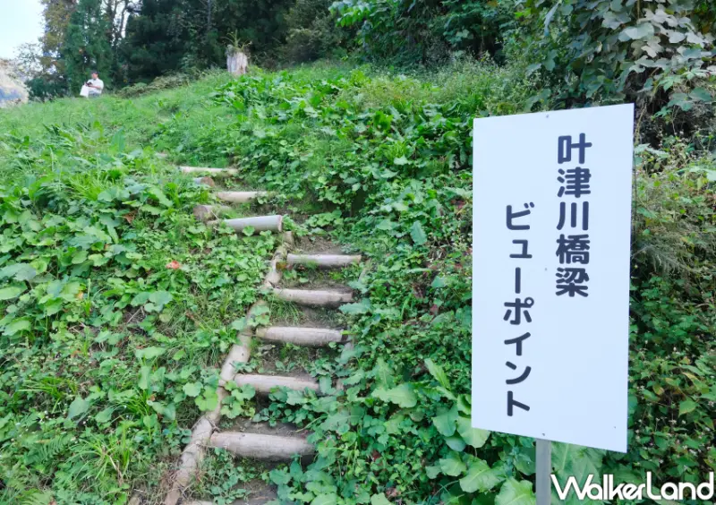 鐵道迷來到只見線除了要朝聖最高人氣的「第一鐵橋」之外,在會津蒲生站與只見站之間還隱藏一座超大彎度的鐵橋「叶津川橋梁」,堪稱是近期竄起的隱藏版打卡點,附近居民更自動自發的整理周邊邊坡,利用木頭設置平易近人的小步道,方便大家登高欣賞火車緩緩行駛過彎的震撼畫面。