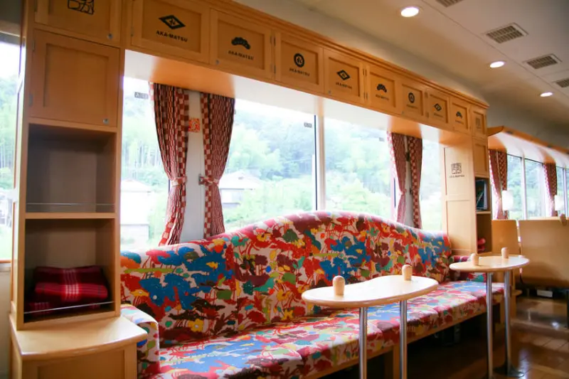 丹後鐵道最具代表性的人氣觀光列車「丹後赤松號(丹後あかまつ号)」,以紅色車身搭配木造內觀,裡面設有沙發席、吧檯座,以及觀景VIP,行駛於天橋立 ~西舞鶴間,能將海之京都的經典美景一覽無遺!