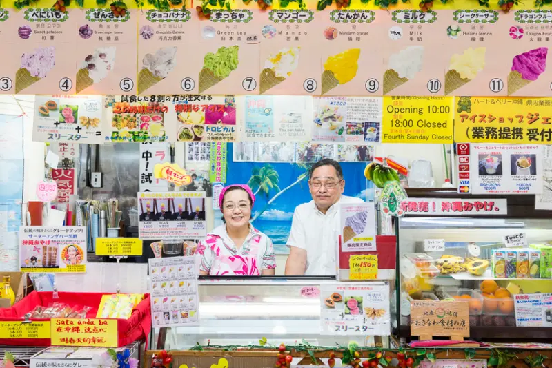 位於市場2樓的人氣店舖,將沖繩產的新鮮水果在不冷凍的情況下與義式冰淇淋的基底混合,獨家研發出「生.義式冰淇淋」,是全日本僅此一家的獨特冰店,每一口都是最天然的水果滋味,低卡低脂又美味!招排的3層義式冰淇淋,能任選3種喜歡的口味,疊得高高的冰淇淋不只好吃,視覺上也讓人雀躍不已。