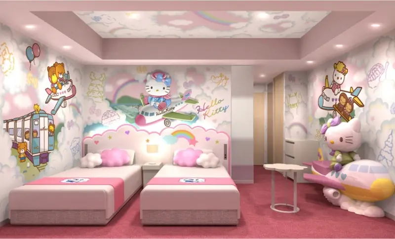▲粉紅色的Pink Flight房,在Hello Kitty的環繞下度過夢幻時光。