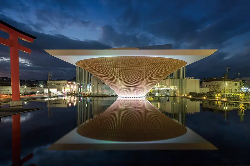 ▲從中心可遠眺富士山,與獨特的木格外牆形成絕美畫面。