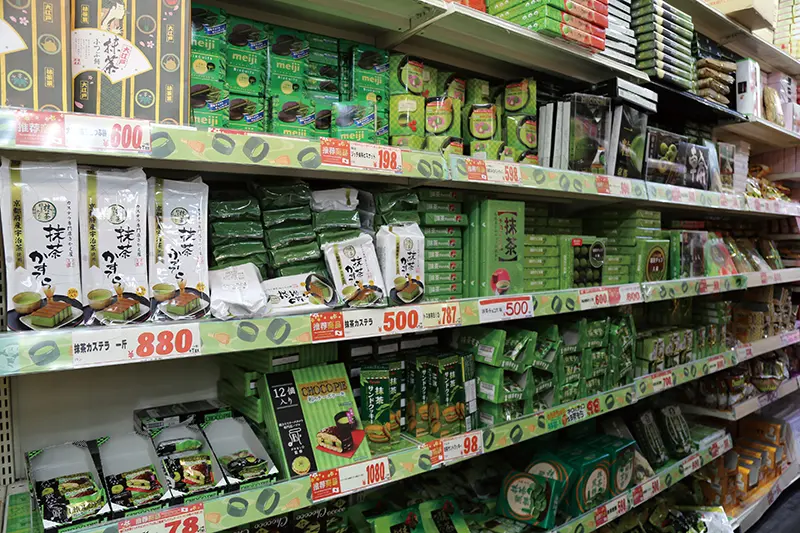 ▲旅客最喜歡的購物聖地之一「唐吉訶德」,道頓堀店設有抹茶專區,能一次買齊各式各樣的抹茶食品。