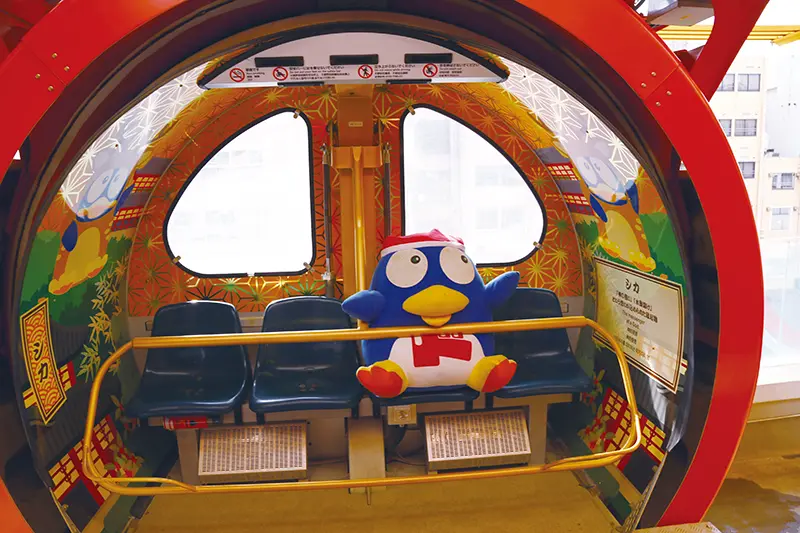 ▲摩天輪車廂內以和風花紋設計,隨處有可愛的企鵝相伴。