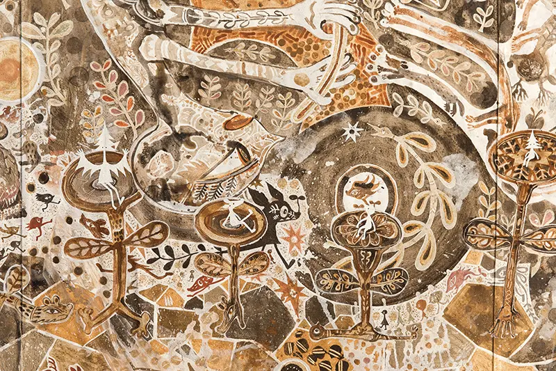 ▲曾參與瀨戶內國際藝術祭的畫家淺井浴介,將公開他過去停留道後溫泉10天,以當地土壤為原料繪製的畫作。