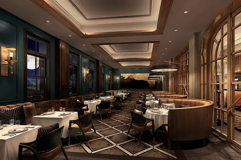 ▲位於3樓的Restaurant RASPBERRY with MOON BAR,以大阪周邊生產的在地食材,特製出一道道創意法式料理,店內也保有歷史建築的典雅風格。