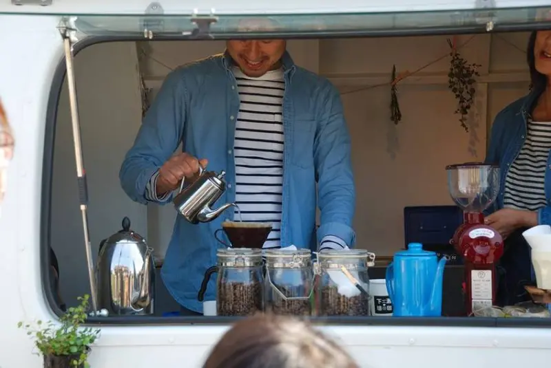▲老闆會在可愛的餐車中研磨新鮮的咖啡豆,仔細沖泡每一杯咖啡!