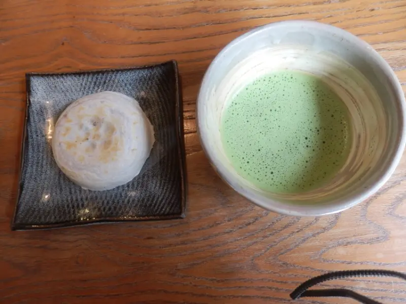 ▲抹茶セット(抹茶套餐)¥600/抹茶與太宰府最受歡迎的特色小吃梅枝餅,可以在店內悠閒享用。