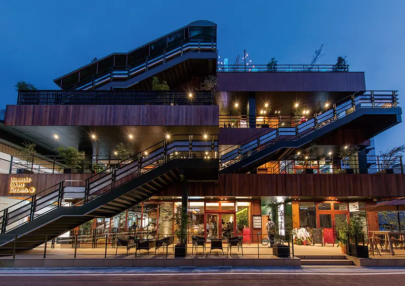 位於小倉站周邊的魚町銀天街商店街是當地人生活的重要幫手,融合了魚町的休閒自在與熱鬧氣息,2017年7月全新開幕的商業設施,結合「國際與在地」,進駐各式人氣店與在地美食,成為人氣的美食據點。咖啡廳、餐酒館,加上開放式的露天座,讓來客吃得盡興。