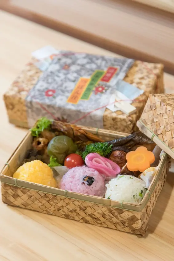 ▲球磨の四季彩弁当と郷土料理つぼん汁セット(球磨四季彩便當佐鄉土料理壺湯)¥1300/周末、假日限定於2號時段路線販售,數量限定。