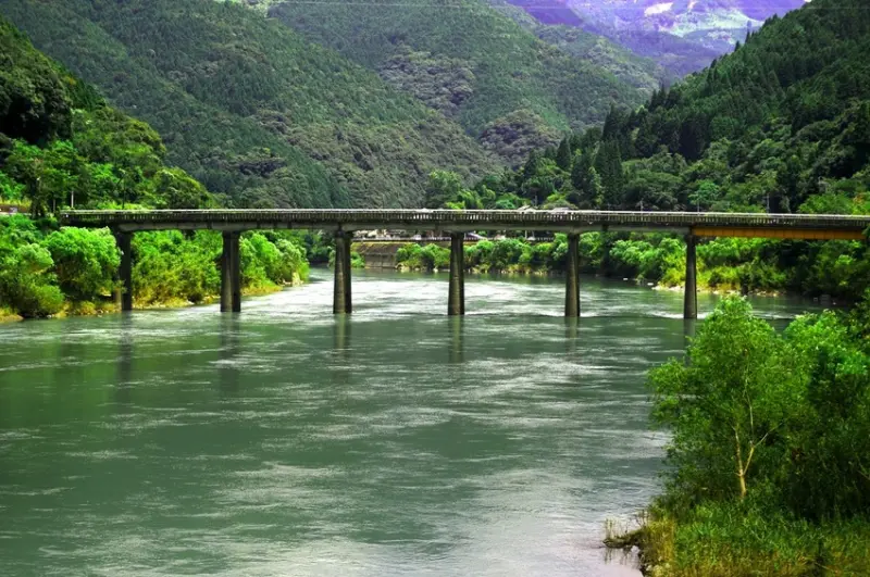 ▲球磨川是熊本第1大河川,流經區域地勢艱險,也形成鬼斧神工美景,從車內就能輕鬆欣賞。